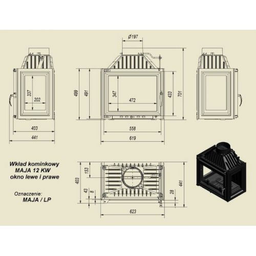 - Модель: Каминная топка Kratki Maja 12 трехсторонняя (MAJA/LP)