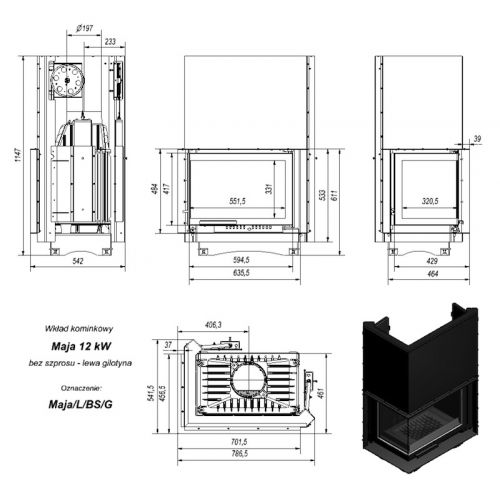 Каминная топка Maja 12 с боковым стеклом Гильотина (MAJA/L(P)/BS/G)
