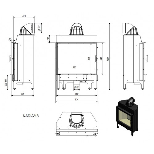 - Размеры топки (ВxШxД, мм) 1331x834x445мм