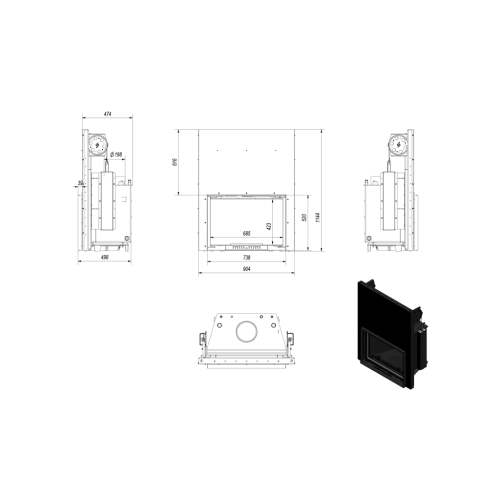 - Размеры топки (ВxШxД, мм) 702x751x414