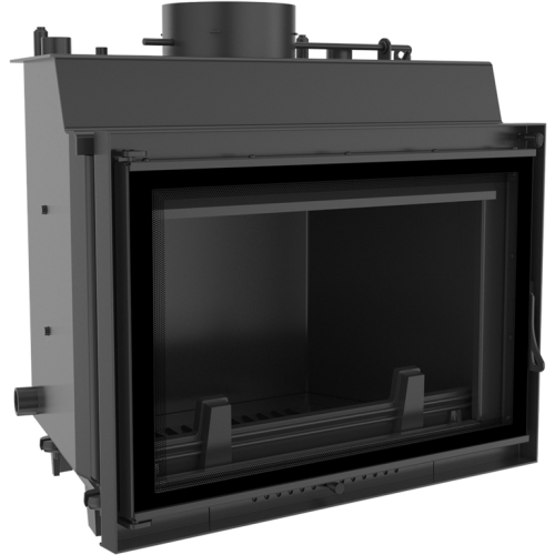 Фасад и дно топки сделаны из серого чугуна. Соединение с корпусом с использованием двойного уплотнителя из жароотпорного стекловолокна. В дверях вмонтирована жаропрочная стеклокерамика немецкой компании Shott Robax, выдерживающая температуру до 800°C. В процессе эксплуатации в каминной топке или печи до 35% теплового излучения отражается обратно в камеру сгорания. Результат: энергия излучения, проходящего через стекло уменьшается и температура в камере сгорания значительно увеличивается. Встроенный шибер позволяет регулировать тягу дымохода. Подача воздуха в камеру сгорания осуществляется через зольник. Регуляция подачи воздуха через нижнюю заслонку.