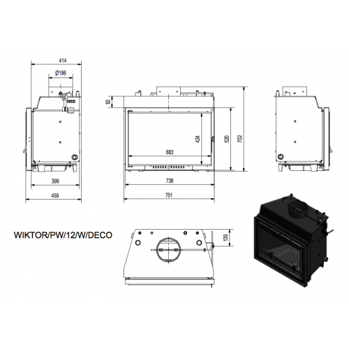 Каминная топка Kratki Wiktor 12 Деко (WIKTOR PW/DECO)