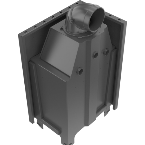 Корпус каминной топки изготовлен из котловой высоколегированной стали толщиной 4 мм, способной работать при повышенных температурах. Внутри камера сгорания футерована керамикой Acumotte, которая аккумулирует тепло, повышает температуру, способствует улучшению параметров горения и защищает стальной корпус.