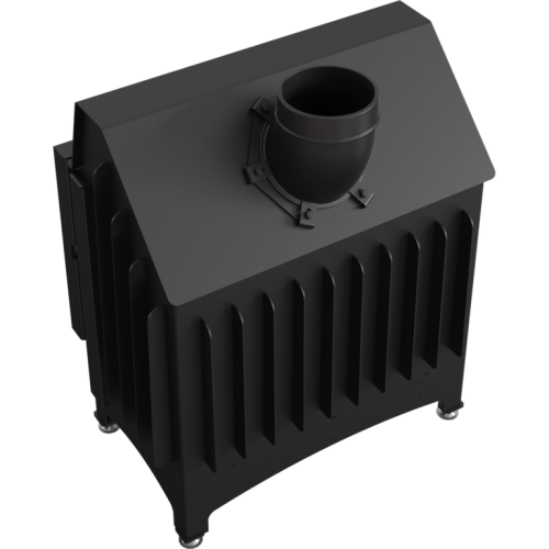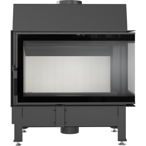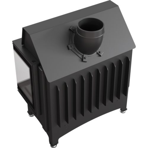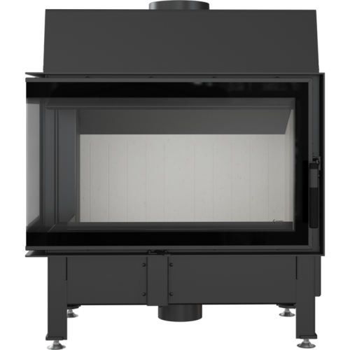 Топка выполнена из котловой стали, стекло угловое и отдекорировано черной рамкой по периметру. Внутренняя футеровка «облицовка» Accumotte. Подключение дымохода верхнее/заднее за счет поворотного отвода. В топке используется современная технология подового горения (без зольника). Также имеется возможность подключения приточного воздуха извне.