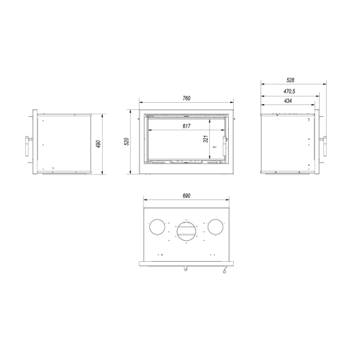 - Размеры топки (ВxШxД, мм) 520x760x470
