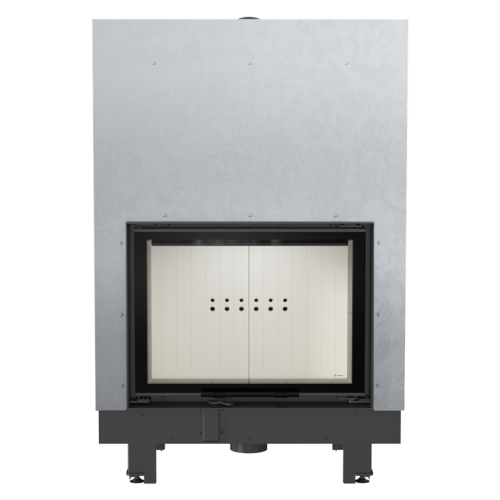 Корпус топки и ее передняя часть изготовлены из высоколегированной стали. Патрубок дымохода поворотный, двухсоставной и с возможностью регулировки на 360 градусов. Конструкция дымосборника, с системой горизонтальных теплоотводящих труб, увеличивает передачу тепла от нагреваемой поверхности в помещение. Дефлектор увеличивает путь дымовых газов, обеспечивая более экологичное сгорание. Топка оснащена одинарным декоративным стеклом с подъемным механизмом дверки. Камера сгорания выложена керамическим материалом Acumotte, который повышает температуру в камере, что способствует улучшению параметров сгорания. Дверка выполнена из закрытого профиля, что делает ее более устойчивой и стабильной к нагрузкам во время работы при высоких температурах. Ножки топки выполнены с возможностью регулировки по высоте. Патрубок подачи наружного воздуха диаметром 125 мм имеет заслонку для регулировки интенсивности подачи воздуха в камеру сгорания.