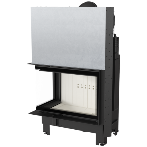 Топка оснащена одинарным декоративным стеклом с подъемным механизмом дверки. Камера сгорания выложена керамическим материалом Acumotte, который повышает температуру в камере, что способствует улучшению параметров сгорания.