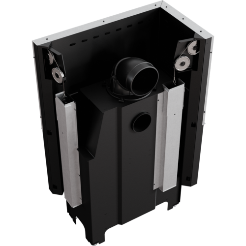 Современная топка VN в версии с открыванием дверей вверх (гильотина) с боковым остеклением без рамки сочетает уникальную эстетику и исключительные эксплуатационные свойства. Кроме визуальных преимуществ, устройство гарантирует эффективное отопление помещений и экологичное сжигание древесины.