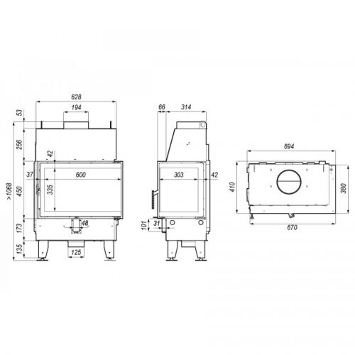 - Диаметр подключения дымохода 200 мм