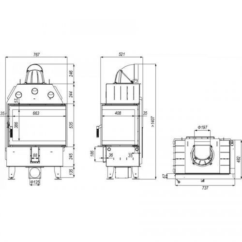 - Длина: 521 мм x Ширина: 767 мм x Высота: 1407 мм