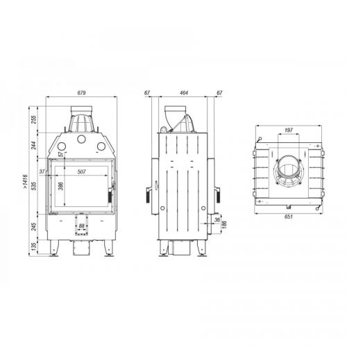- Диаметр подключения дымохода 200 мм