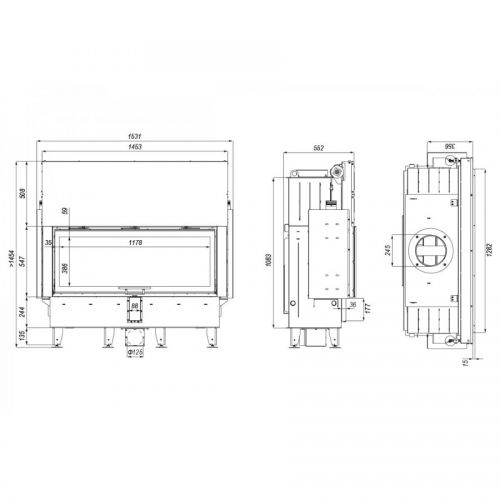 - Длина: 552 мм x Ширина: 1531 мм x Высота: 1454 мм