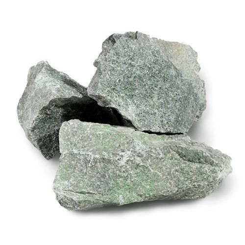 Камни для бани "Жадеит" - минерал зелёного цвета из группы щелочных моноклинных пироксенов, силикат натрия и алюминия. Жадеит оказывает благоприятное энергетическое воздействие на организм человека: нормализует артериальное давление, укрепляет нервную систему, улучшает состав крови, смягчает кровеносные сосуды, усиливает мужскую потенцию, лечит заболевания мочевыводящих путей, почек. У разогретого жадеита полезные свойства усиливаются. При нагревании Жадеит выделяет ионы натрия и ряда микроэлементов (Zn, Cu, Se, Ag и др., всего около 60-ти), которые попадают в кровоток вместе с вдыхаемым воздухом, а также всасываясь через кожу. Достигая центров коры головного мозга, ионы нормализируют состояние вегетативной и центральной нервной системы, функции эндокринных желез, а также создают противовоспалительный эффект и бактериостатическое действе.
