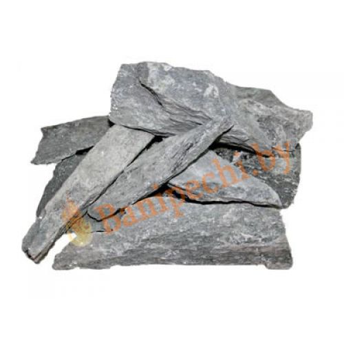 Камни для бани "Талькохлорит" — горная порода, состоящая из талька (40—50 %), магнезита (40—50 %) и хлорита (5—8 %). Камень серого цвета, в природе встречается в виде пластовых залежей. Хорошо аккумулирует и отдает тепло, устойчив к разрушению под воздействием резких перепадов температур, равномерно нагревается по всей массе и имеет одинаковый коэффициент теплового расширения во всех направлениях. Также при нагреве не выделяет вредных газов, химически устойчив, имеет естественный радиационный фон, не превышающий природный.