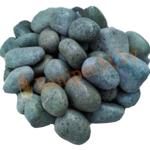 Камни для бани "Жадеит" - минерал зелёного цвета из группы щелочных моноклинных пироксенов, силикат натрия и алюминия. Жадеит оказывает благоприятное энергетическое воздействие на организм человека: нормализует артериальное давление, укрепляет нервную систему, улучшает состав крови, смягчает кровеносные сосуды, усиливает мужскую потенцию, лечит заболевания мочевыводящих путей, почек. У разогретого жадеита полезные свойства усиливаются. При нагревании Жадеит выделяет ионы натрия и ряда микроэлементов (Zn, Cu, Se, Ag и др., всего около 60-ти), которые попадают в кровоток вместе с вдыхаемым воздухом, а также всасываясь через кожу. Достигая центров коры головного мозга, ионы нормализируют состояние вегетативной и центральной нервной системы, функции эндокринных желез, а также создают противовоспалительный эффект и бактериостатическое действе.