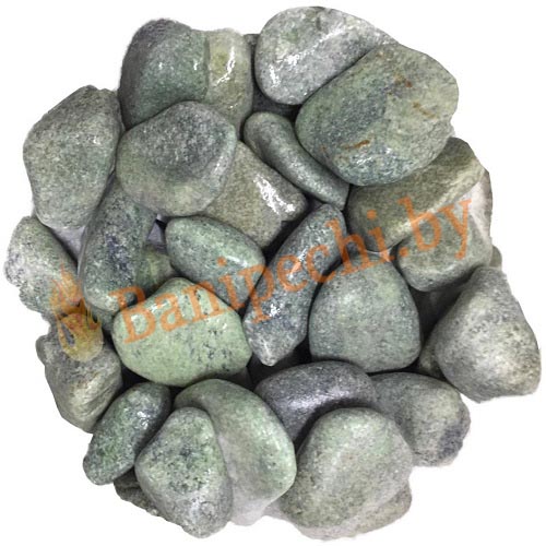 Камни для бани "Жадеит" - минерал зелёного цвета из группы щелочных моноклинных пироксенов, силикат натрия и алюминия. Жадеит оказывает благоприятное энергетическое воздействие на организм человека: нормализует артериальное давление, укрепляет нервную систему, улучшает состав крови, смягчает кровеносные сосуды, усиливает мужскую потенцию, лечит заболевания мочевыводящих путей, почек. У разогретого жадеита полезные свойства усиливаются. При нагревании Жадеит выделяет ионы натрия и ряда микроэлементов (Zn, Cu, Se, Ag и др., всего около 60-ти), которые попадают в кровоток вместе с вдыхаемым воздухом, а также всасываясь через кожу. Достигая центров коры головного мозга, ионы нормализируют состояние вегетативной и центральной нервной системы, функции эндокринных желез, а также создают противовоспалительный эффект и бактериостатическое действе.
