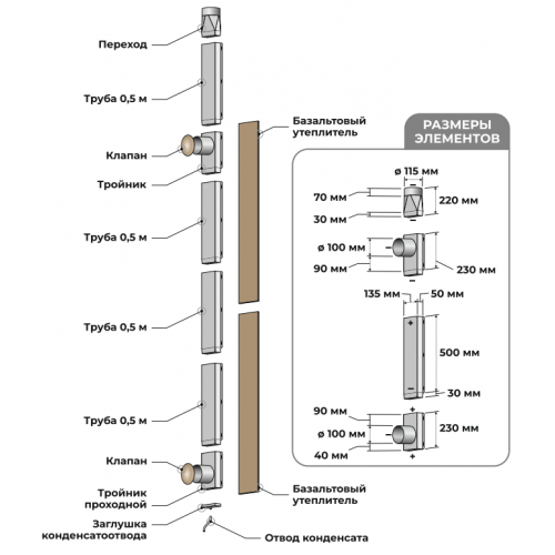 - тройник с заглушкой (конденсатоотвод) — 1 шт.;