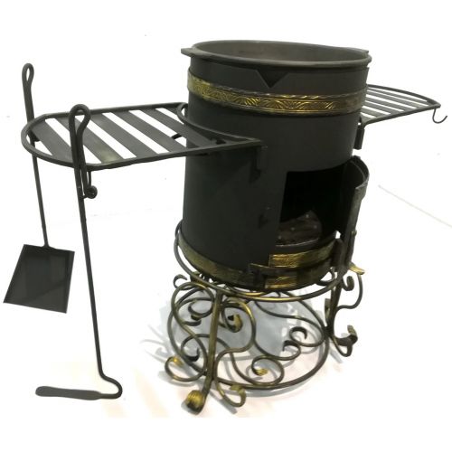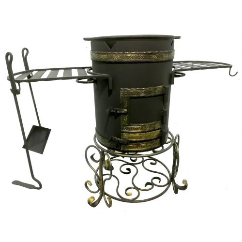 В комплекте - две съемные полки, кованая кочерга и совок