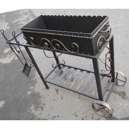 Размеры жаровни ― высота 17 см, длина ― 80 см, ширина ― 31 см, жаровня съемная -толщина металла ― 5 мм