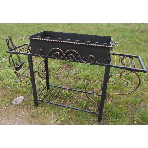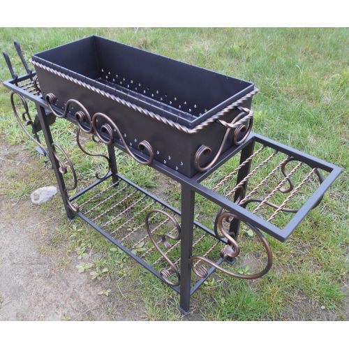 Размеры жаровни ― высота 17 см, длина ― 80 см, ширина ― 31 см, жаровня съемная -толщина металла ― 5 мм