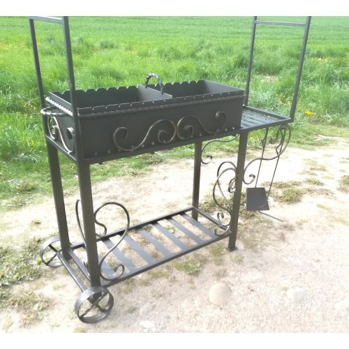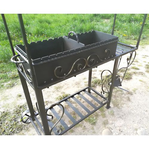 Размеры жаровни ― высота 17 см, длина ― 80 см, ширина ― 31 см, жаровня съемная -толщина металла ― 5 мм