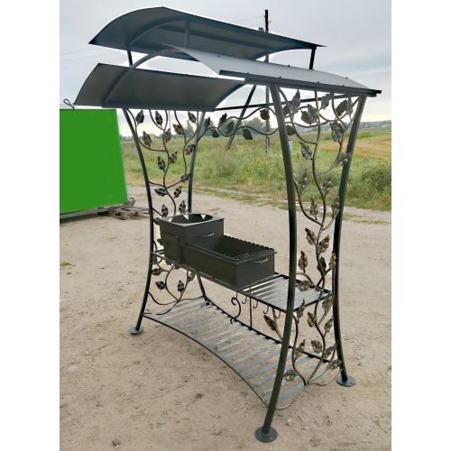 Кованый мангал с крышей КУ-4-3, сталь 5 мм
