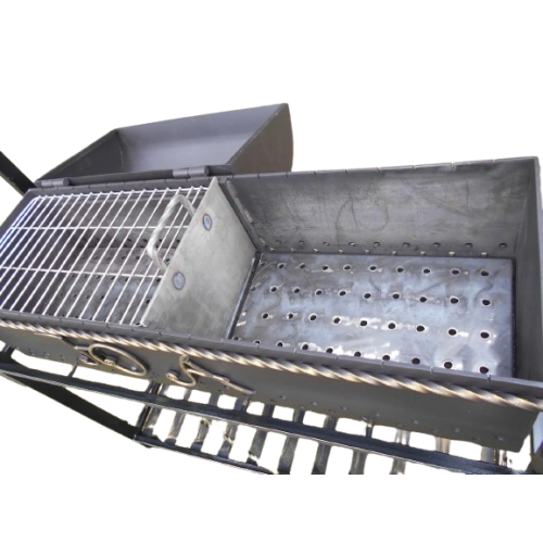 Комплектуется кованой кочергой, совком, решеткой барбекю, съемная перегородка в жаровне, крышка гриль 40 см (сталь 2,5 - 3 мм)