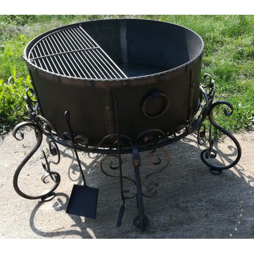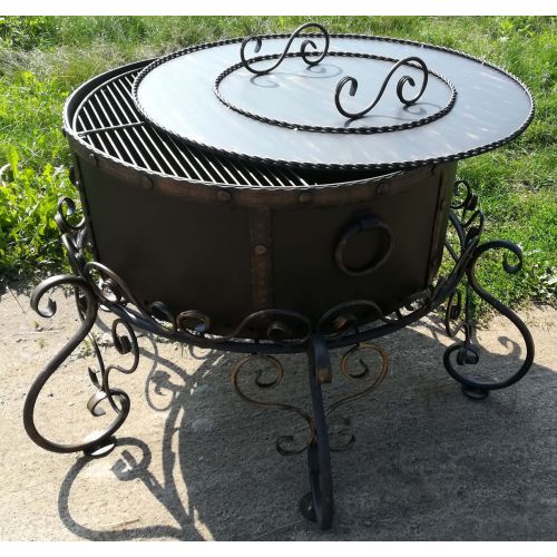 Комплектация - крышка (2 мм), решетка барбекю из пищевой нержавеющей стали №304 (прут 5 мм), кованая кочерга и совок