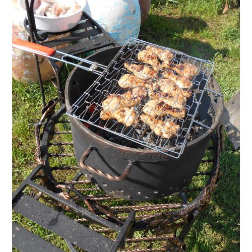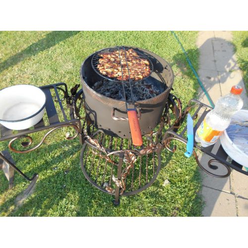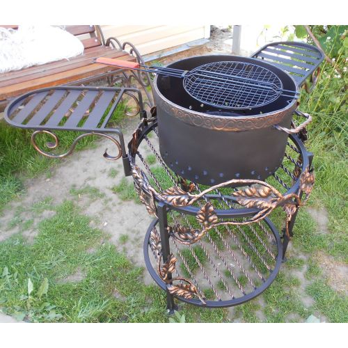 Мангал дополнительно комплектуется двумя (по желанию тремя) быстросъемными полочками, а так же кованой кочергой и совком.
