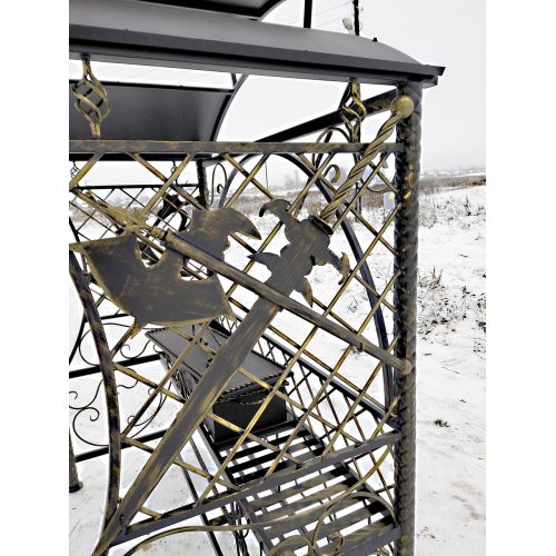 По желанию клиента, мангал можно дополнительно украсить декорированным оружием или его поменять на другой вид :