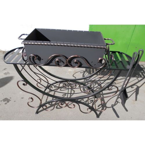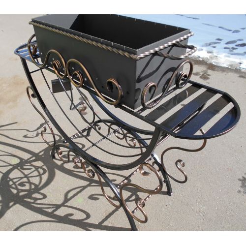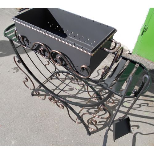 Размеры жаровни ― высота 17 см, длина ― 60 см, ширина ― 31 см, жаровня съемная -толщина металла ― 5 мм