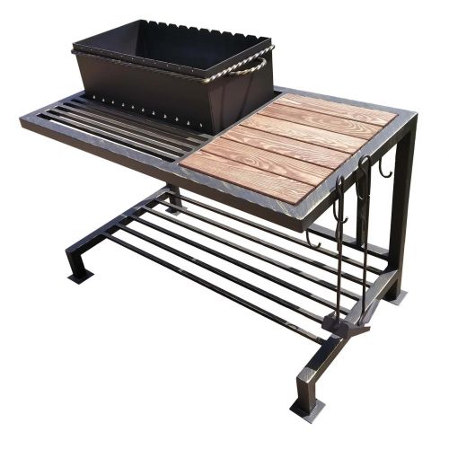 - продуманная конструкция и эргономика - в зависимости от места использования мангала ( на открытом воздухе, помещении ) по желанию возможно добавление полочки, изменение размеров жаровни и т.д.