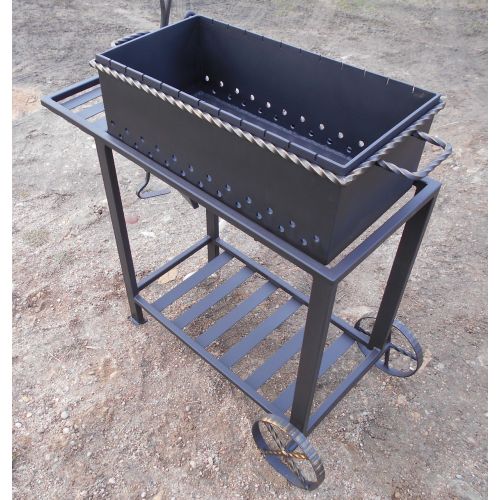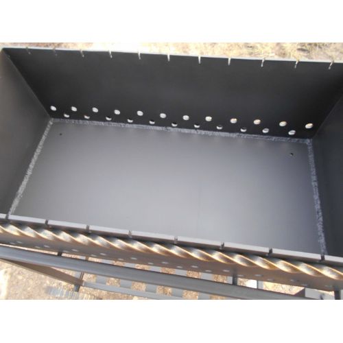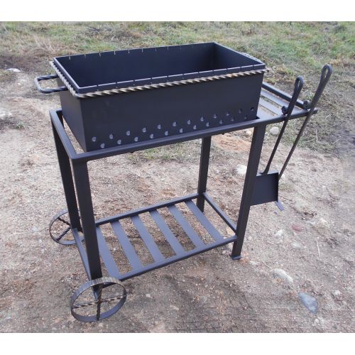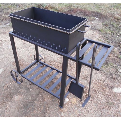 Размеры жаровни ― высота 17 см, длина ― 60 см, ширина ― 30 см, жаровня съемная -толщина металла ― 5 мм