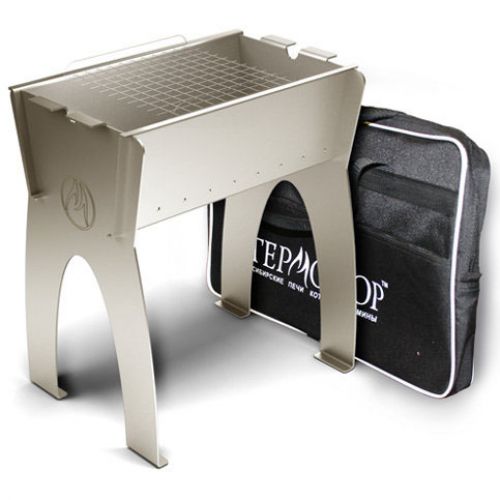 Мангал Термофор - выполнен из жаростойкой стали толщиной 3 мм, что значительно увеличивает неприхотливость и срок службы мангала. Простая конструкция позволяет быстро собирать и разбирать мангал, а особая форма деталей делает его более прочным и устойчивым к внешним нагрузкам. Укомплектован удобной сумкой. Не деформируется.