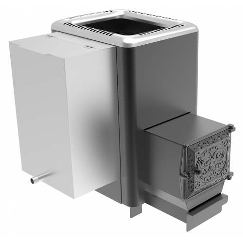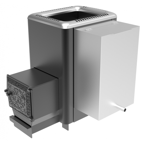 В данной модели полностью изменён внешний кожух печи. Добавлена универсальная функция установки навесного бака. По желанию покупателя на данную модель можно установить навесной бак на 35 л с правой или с левой стороны.