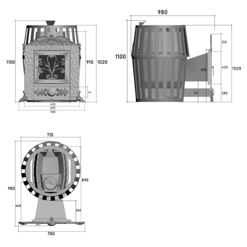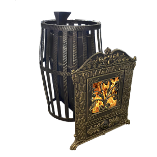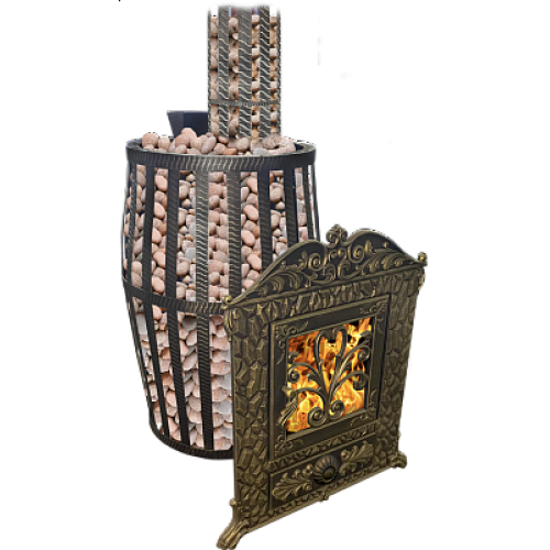 опка печи, газоходные каналы и приёмная плита открытой каменки выполнены из высококачественного чугуна толщиной до 25 мм, марки СЧ-20. Закрытая каменка выполнена из жаропрочной 4 мм нержавеющей стали!
