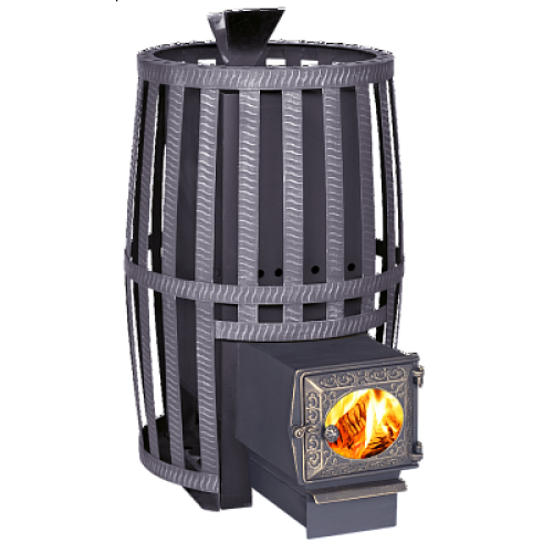 Банная печь накопительного типа, объединившая в себе две каменки — открытую и закрытую. Открытая каменка, как у большинства классических печей, прогревается от газоходных каналов и нагревает камень до температуры 250-300С.