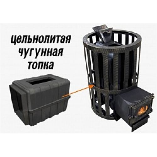 Известно, что чугунная печь для бани — это лучший вариант отопления, который только можно желать для парной. Чугун, который используется при производстве наших печей, считается одним из самых прочных, долговечных и слабо подверженных коррозии материалов. Также чугун является экологически чистым материалом, не выделяющим вредных веществ (вспомним чугунную посуду). Бытует мнение, что при нагреве, а в дальнейшем при резком охлаждении (если облить раскаленный чугун водой), он обязательно лопнет. Здесь мы готовы поспорить. Действительно, у чугуна значительно выше линейное расширение. При охлаждении прямолинейные изделия могут деформироваться или даже лопнуть. Основополагающим фактором банной печи из чугуна или другого изделия из чугуна, эксплуатируемого в различных температурных режимах, является форма изделия, позволяющая максимально убрать линейное расширение и избежать деформации при резком нагреве или охлаждении. Давайте вспомним ту же чугунную посуду. Чугунный казан «рождён», чтобы его постоянно нагревали и охлаждали. Тоже самое чугунные горшки, использующие в русских печах.