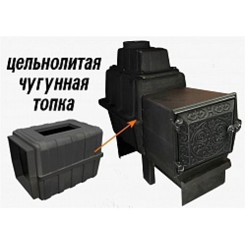 Топка печи изготовлена из Чугуна марки СЧ-20 толщиной 12-16 мм, который значительно увеличивает срок службы печи.