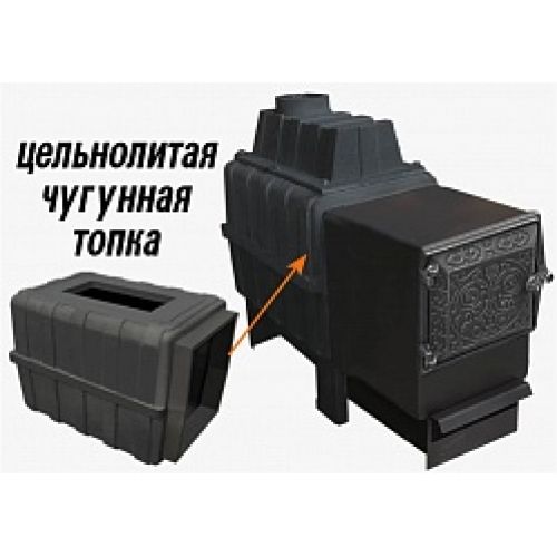 Топка печи изготовлена из Чугуна марки СЧ-20 толщиной 15-25 мм, который значительно увеличивает срок службы печи.