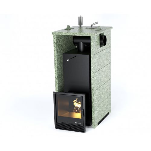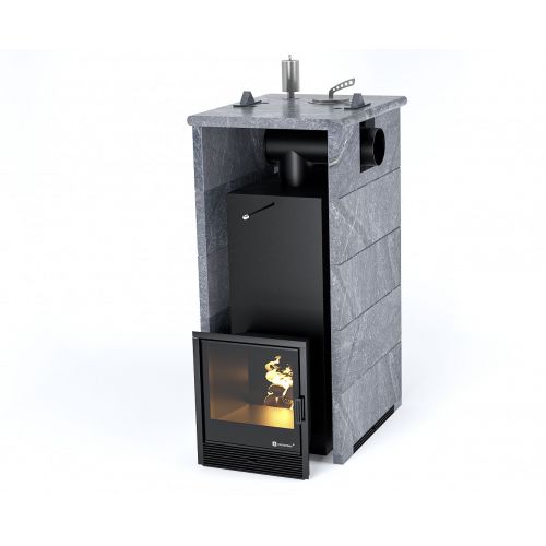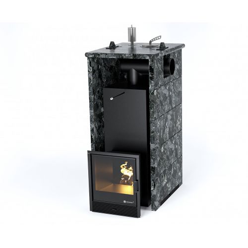 Геленджик - банная печь предназначенная для использования в просторной бане с объемом парной не более 35 м3. Закрытая каменка и встроенный парогенератор гарантирует большое количество легкого пара, огонь, пылающий за пано- рамным стеклом подарит атмосферу тепла и уюта в вашей бане, Боковой вход в каменку (М2) позволяет провести более быструю ревизию камней, подавать воду на камни, не используя парогенератор. Кожух из природного камня, создаст приятную атмосферу в парной, излучая мягкое тепло.
