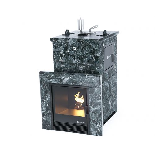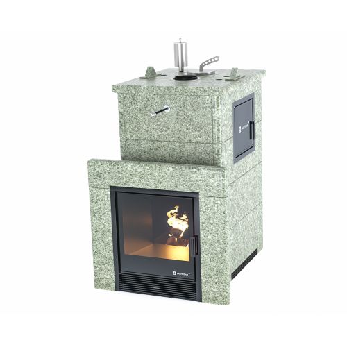 Сочи М2 - банная печь предназначенная для использования в семейной бане с объемом парной не более 22 м3. Закрытая каменка и встроенный парогенератор гарантирует большое количество легкого пара, огонь, пылающий за панорамным стеклом подарит атмосферу тепла и уюта в вашей бане, Боковой вход в каменку (М2) позволяет провести более быструю ревизию камней, подавать воду на камни, не используя парогенератор. Кожух из природного камня, создаст приятную атмосферу в парной, излучая мягкое тепло.