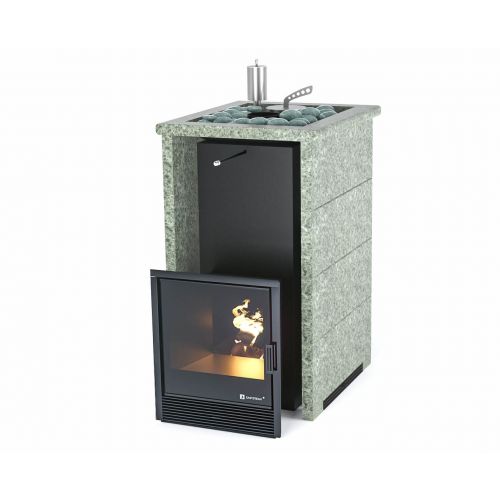 Сочи М2 - банная печь предназначенная для использования в семейной бане с объемом парной не более 22 м3. Закрытая каменка и встроенный парогенератор гарантирует большое количество легкого пара, огонь, пылающий за панорамным стеклом подарит атмосферу тепла и уюта в вашей бане, Боковой вход в каменку (М2) позволяет провести более быструю ревизию камней, подавать воду на камни, не используя парогенератор. Кожух из природного камня, создаст приятную атмосферу в парной, излучая мягкое тепло.