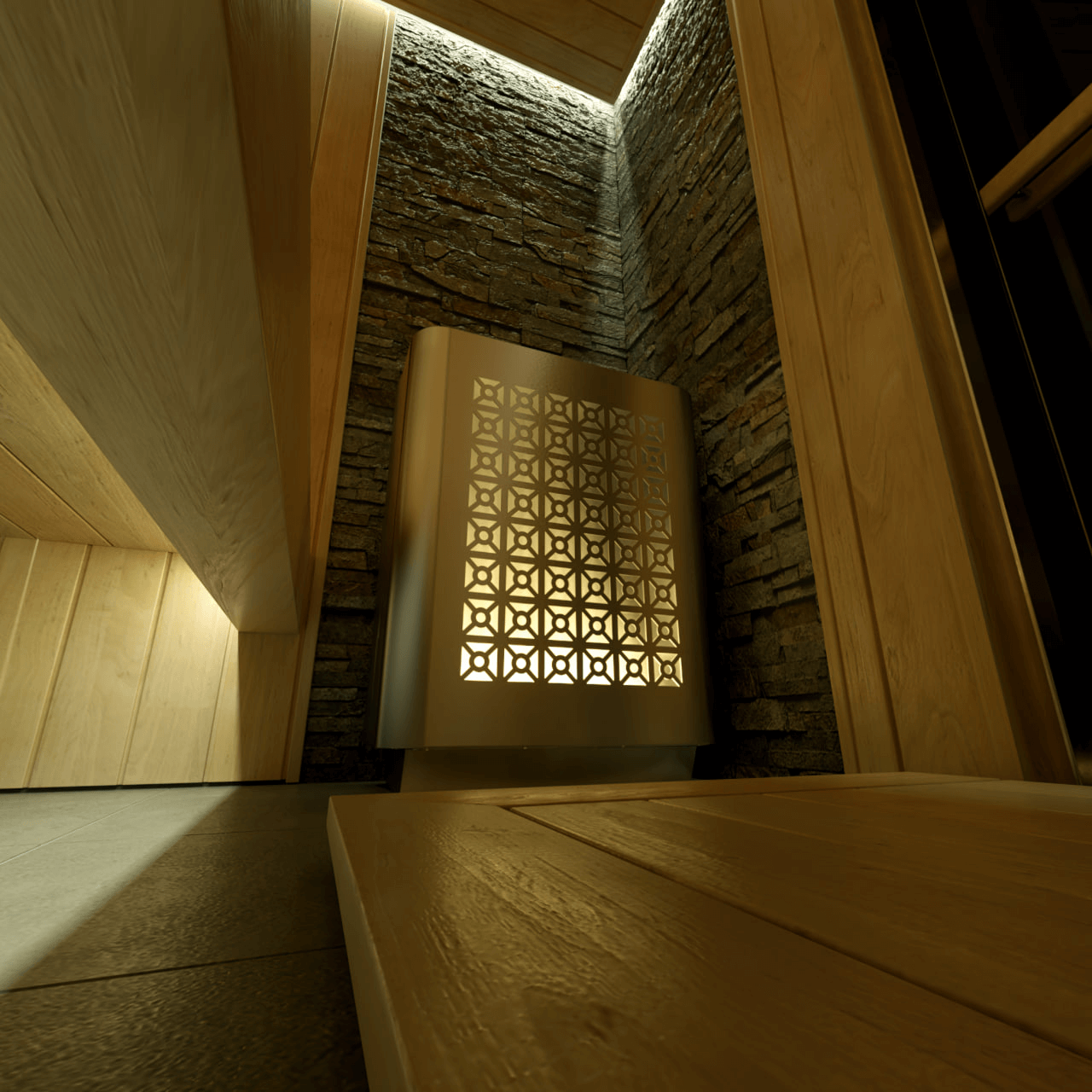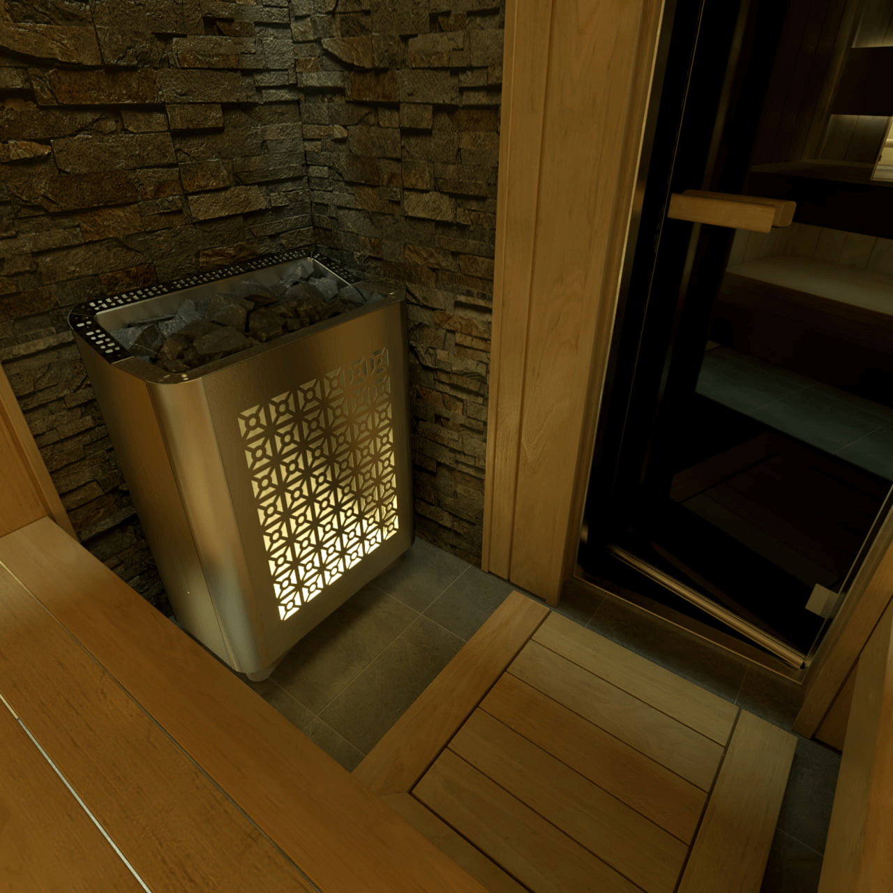 Дизайнеры каменки, вдохновившись непередаваемой атмосферой бань с дровяными печами, создали электрическую печь с подсветкой, создающую неповторимый уют в вашей сауне благодаря традиционному орнаменту.