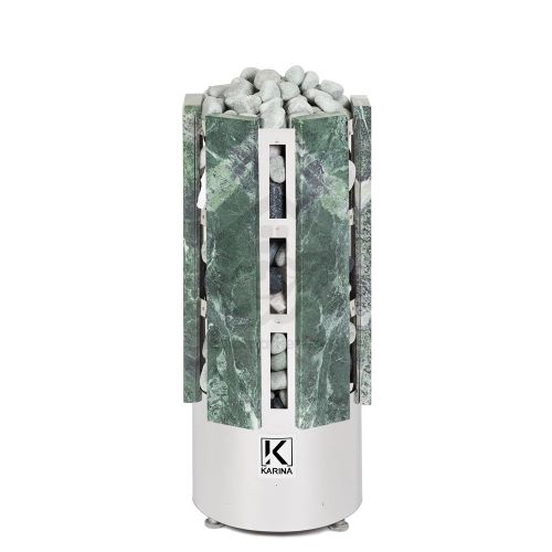 Электрокаменка Karina Forta 12 Змеевик предназначена для использования в парных объемом до 16м3. Печь выполнена в напольном варианте и обладает цилиндрической формой дополненной плитами из натурального камня Змеевика. Напряжение питания - 380В. Данная модель имеет 3 тэна, расположенных в виде треугольника. В центре внизу расположен бак для воды емкостью 3 л, который является парогенератором. Выше парогенератора имеется емкость под мелкие камни или нержавеющие шары объемом 2.5 л, вмещающая 5 кг мелкого камня, называемая закрытой каменкой с воронкой для подачи воды и получения мелкодисперсного пара. Электрическая печь Karina Forta 12 Змеевик многофункциональна, и при правильной эксплуатации она подойдет для любителей как финской сауны, так и русской бани.
