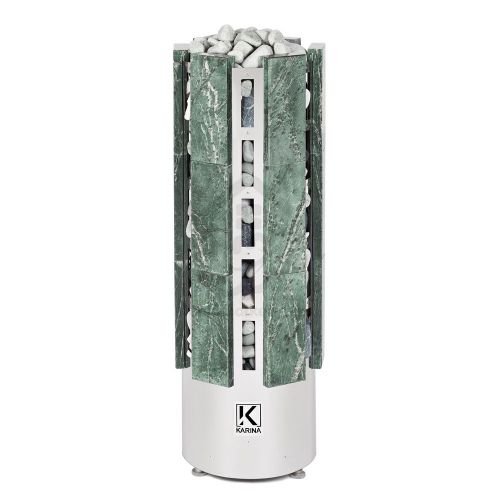 Электрокаменка Karina Forta 21 Змеевик предназначена для использования в парных объемом до 38м3. Печь выполнена в напольном варианте и обладает цилиндрической формой дополненной плитами из натурального камня Змеевика. Напряжение питания - 380В. Данная модель имеет 9 тэнов, расположенных в виде треугольника. В центре внизу расположен бак для воды емкостью 5л, который является парогенератором. Выше парогенератора имеется емкость под мелкие камни или нержавеющие шары объемом 4.7л, вмещающая 10 кг мелкого камня, называемая закрытой каменкой с воронкой для подачи воды и получения мелкодисперсного пара. Электрическая печь Karina Forta 21 Змеевик многофункциональна, и при правильной эксплуатации она подойдет для любителей как финской сауны, так и русской бани.