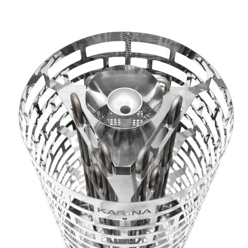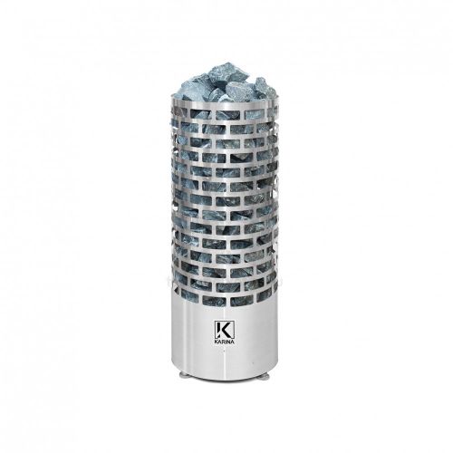Электрокаменка Karina Nova 10E предназначена для использования в парных объемом до 14м3. Печь выполнена в напольном варианте цилиндрической формы. Напряжение питания– 380В. Данная модель укомплектована 3 ТЭНами, расположенными в виде треугольника. Внизу каменки располагается бак для воды емкостью 3 л, который является парогенератором. Выше парогенератора находится емкость под мелкие камни или нержавеющие шары объемом 2.5 л, вмещающая 5 кг мелкого камня, называемая закрытой каменкой с воронкой для подачи воды и получения мелкодисперсного пара. Электрическая печь Karina Nova 10E многофункциональна, и при правильной эксплуатации она подойдет для любителей как финской сауны, так и русской бани.
