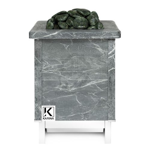 Электрическая печь KARINA Quadro 9 mini Талькохлорит – это электрокаменка, облицованная натуральным камнем со всех сторон, и обладающая мощностью оптимальной для семейных саун и средних бань объемом до 14 м3.