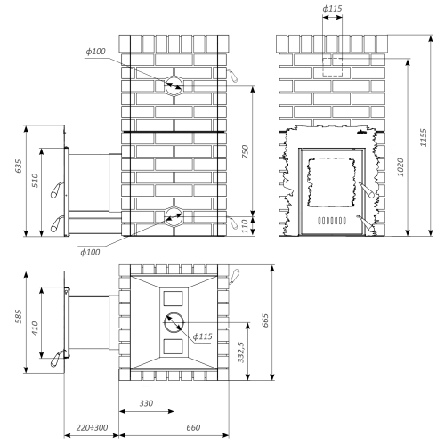 *Камни для закрытой (внутренней) каменки входят в комплект поставки - 20 кг