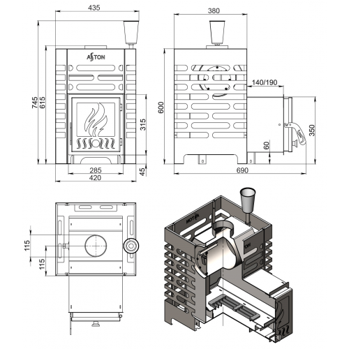 - Печь ASTON из нержавеющий стали марки AISI 430 устойчива к окислению и прогару.